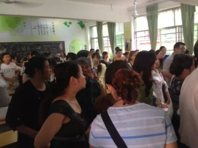 (圖為家長現(xiàn)場咨詢和辦理業(yè)務(wù))