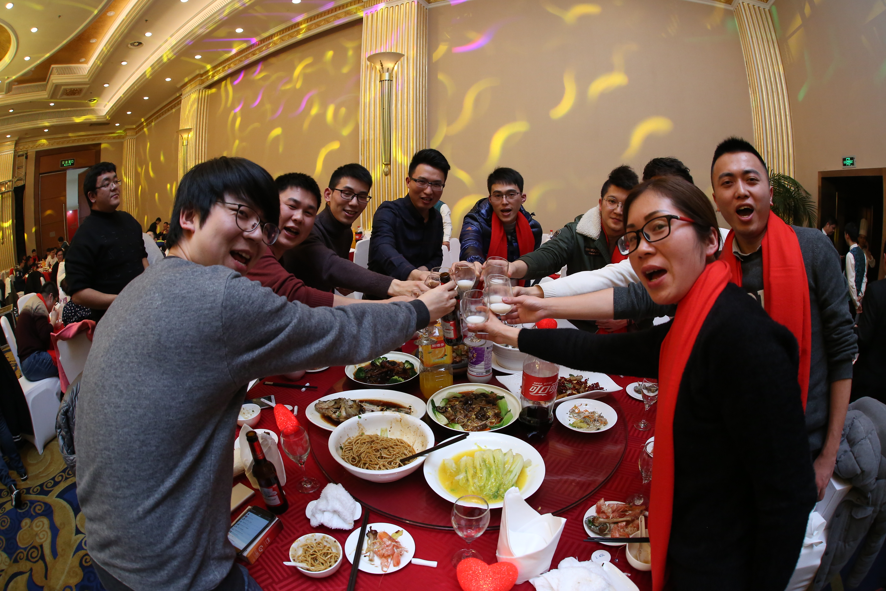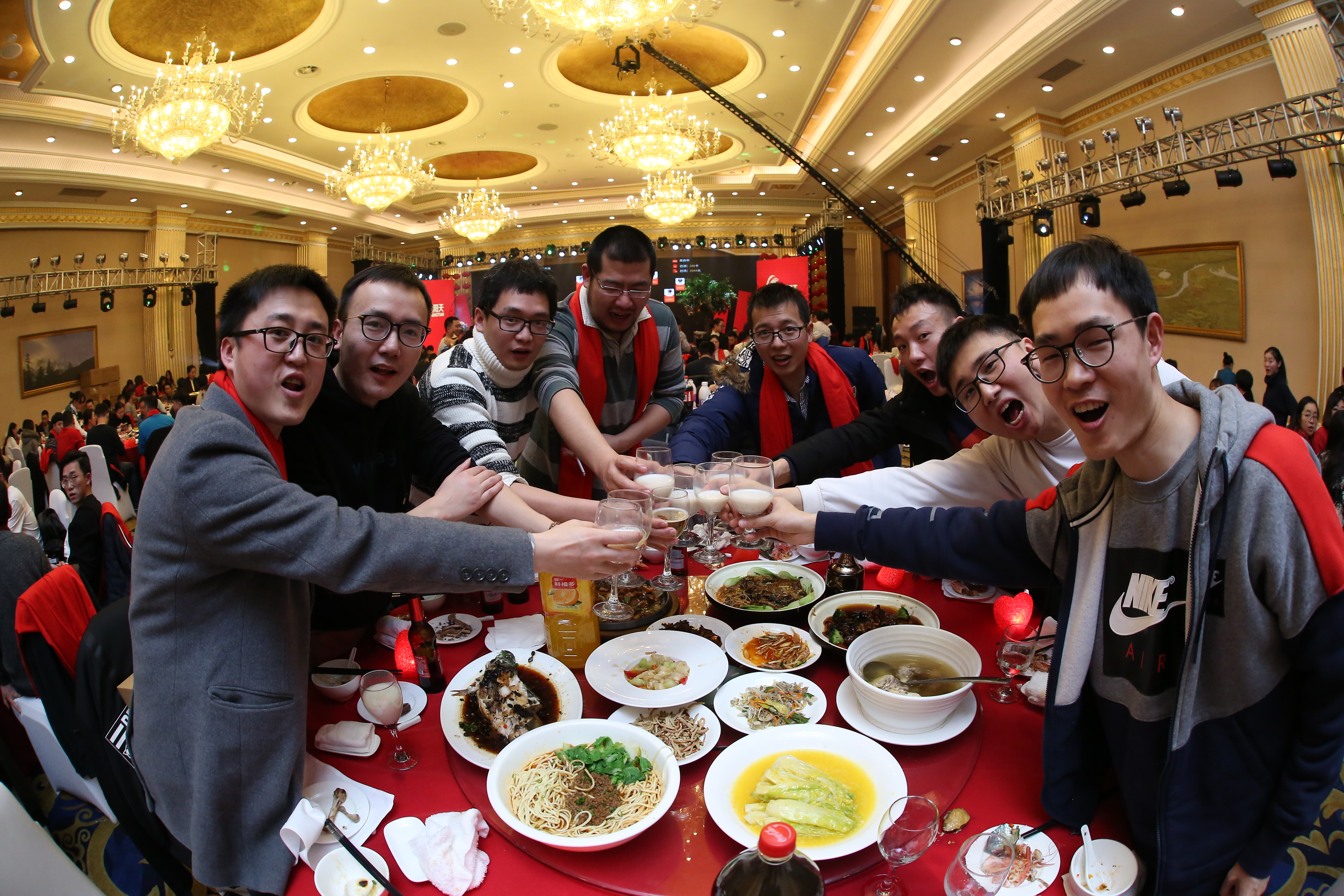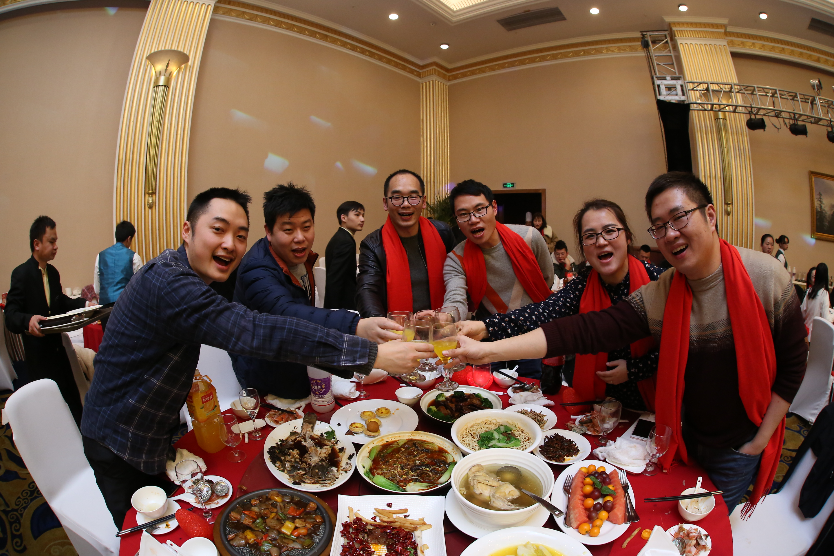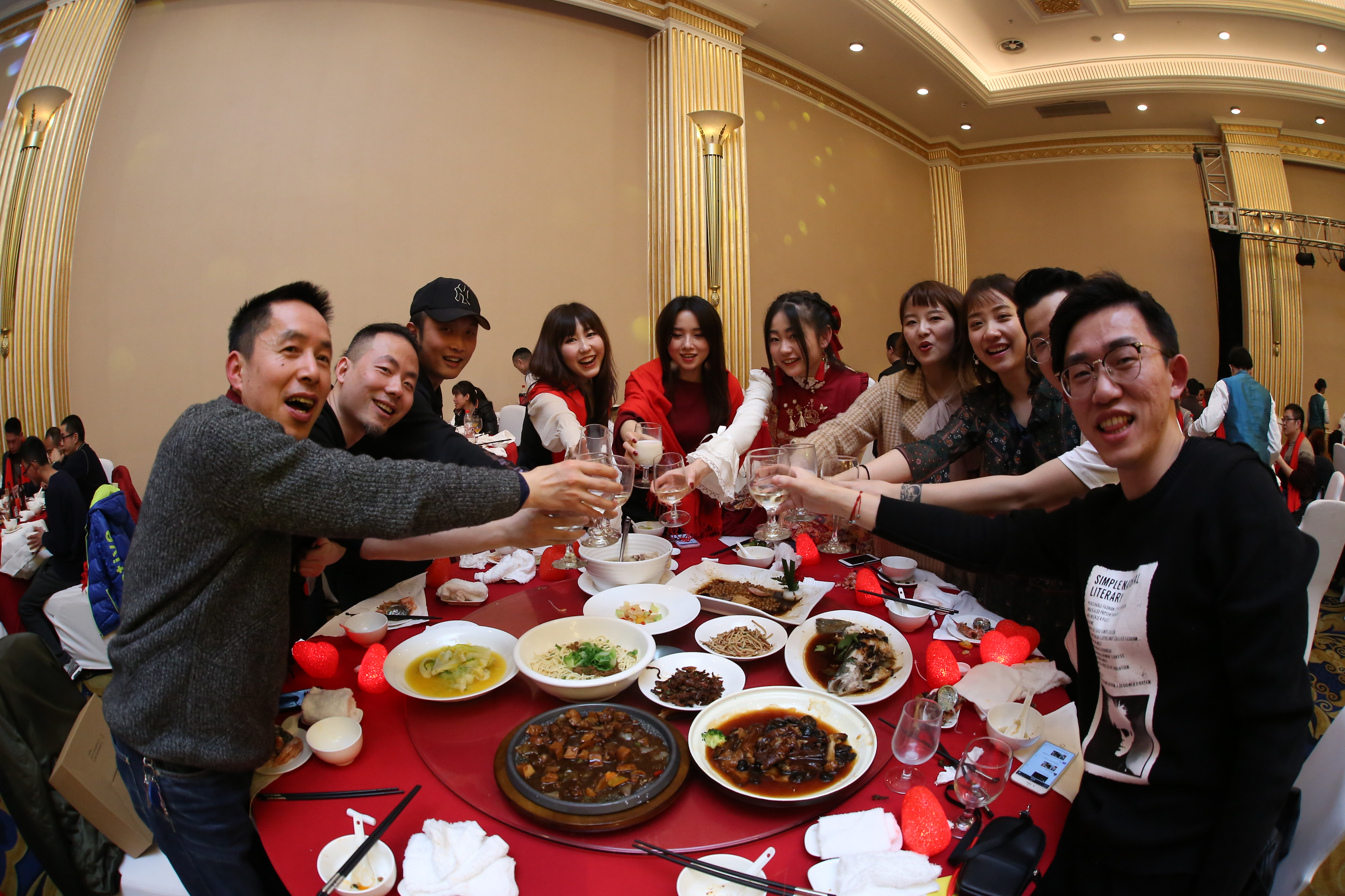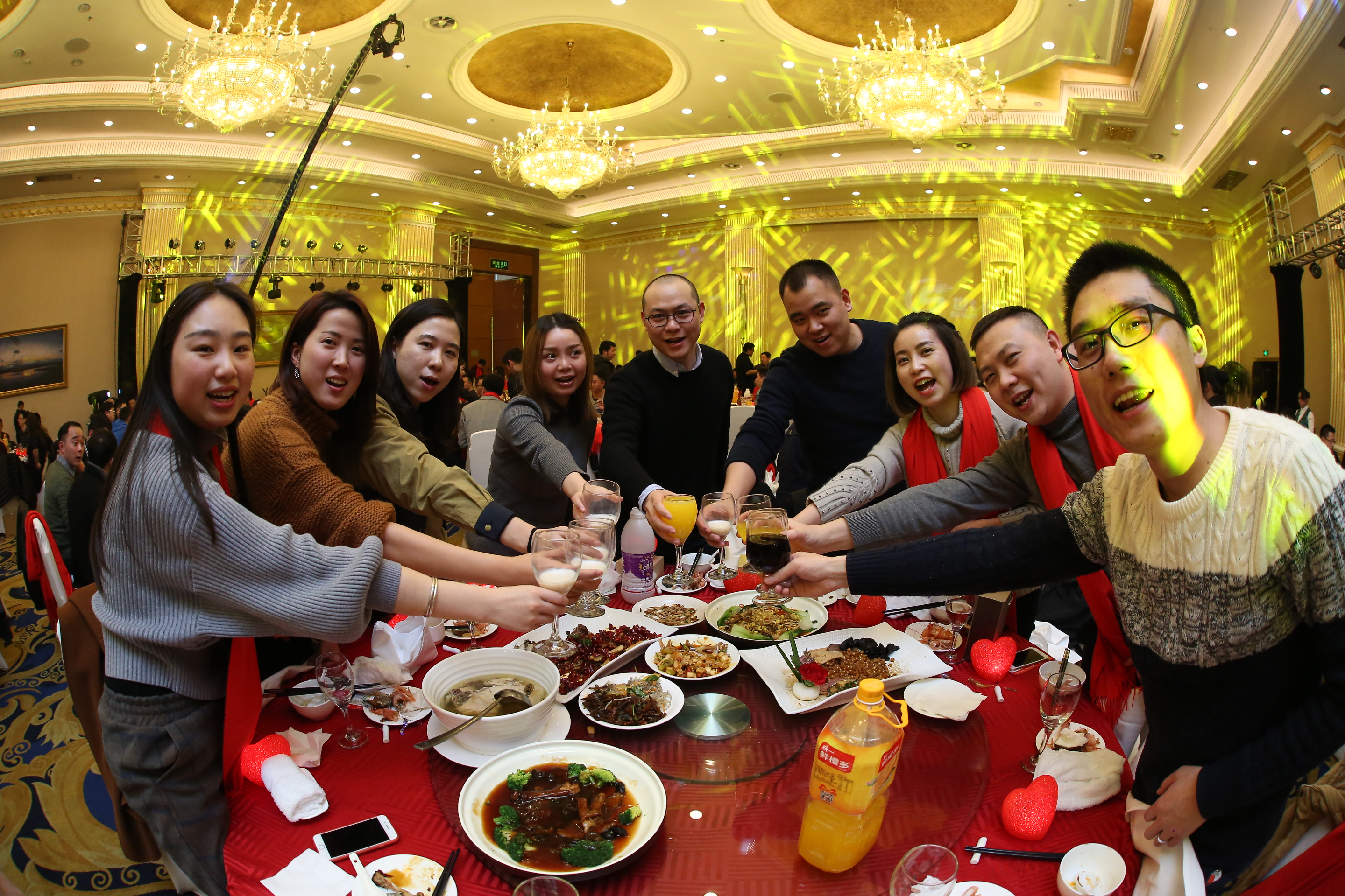 在三位副總共同舉杯致祝酒詞后,晚宴正式開(kāi)始。珍饈美酒,接踵而至,領(lǐng)導(dǎo)與員工們觥籌交錯(cuò),酣暢淋漓。沒(méi)有往日嚴(yán)肅的工作氣氛,而是像朋友家人一樣把酒言歡,臉上洋溢著喜悅的笑容,這一刻我們都無(wú)比幸福。在其樂(lè)融融的氛圍下,2018年年會(huì)圓滿落下了帷幕。